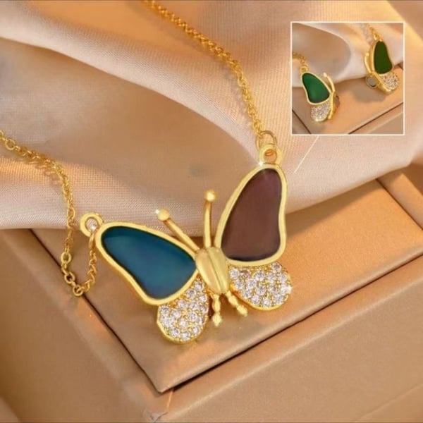 ❤️This is a true interactive piece of jewelry - the thermosensitive butterfly necklace senses the changes in your body temperature and alters its color accordingly. It's like a vibrant, living organism, merging with you.